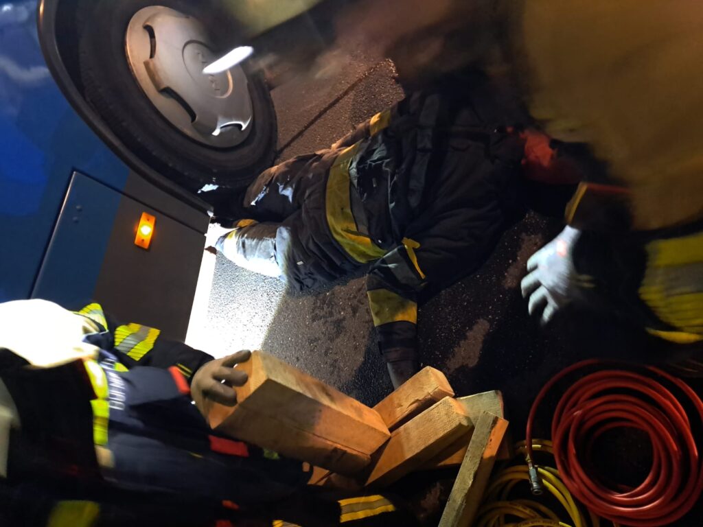 Besonders knifflig war die Rettung einer Person unter dem Bus. Dank unserer guten Ausbildung konnten wir die Person erfolgreich berfreien.