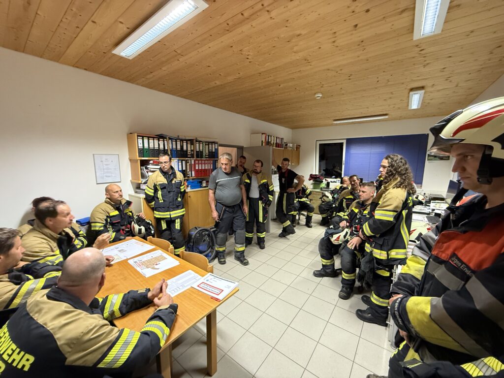 Die Theorie von Brandschutzbedarfsplänen und Melderkarten konnten wir in dieser Probe praktisch ausprobieren. DAzu wurde im Bauhofe eine Alarmierung über die Brandmeldeanlage ausgelöst. Wir wurden über Piepser alarmiert und fuhren dann zum Objekt. Dort schauten wir uns die BMA vor Ort an.